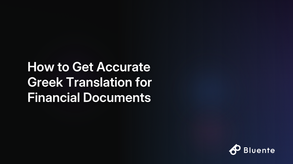 Ready to eliminate the risks and complexities of Greek financial translation? Discover how Bluente's AI-powered document translation platform preserves your data's integrity and formatting while ensuring accurate Greek translation of your financial documents. Try Bluente for free and experience the difference that purpose-built financial translation technology can make.