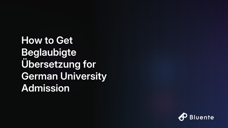A Reliable Option: For a streamlined process, Bluente offers certified translations from court-sworn professionals accepted by German universities, starting at $25/page with a 24-hour turnaround.