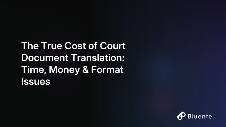 Bluente's AI Document Translation Platform securely translates court documents in minutes while keeping layouts intact, helping firms cut costs by up to 96%.