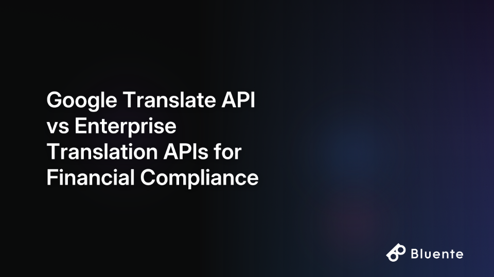 This article is an honest comparison of what a translation API for financial compliance platforms actually needs to deliver—and where the shortcuts stop working. We'll introduce Bluente as a purpose-built option for file-heavy compliance workflows and compare it against the incumbent baseline, Google Translate, and a credible mid-market alternative, DeepL.