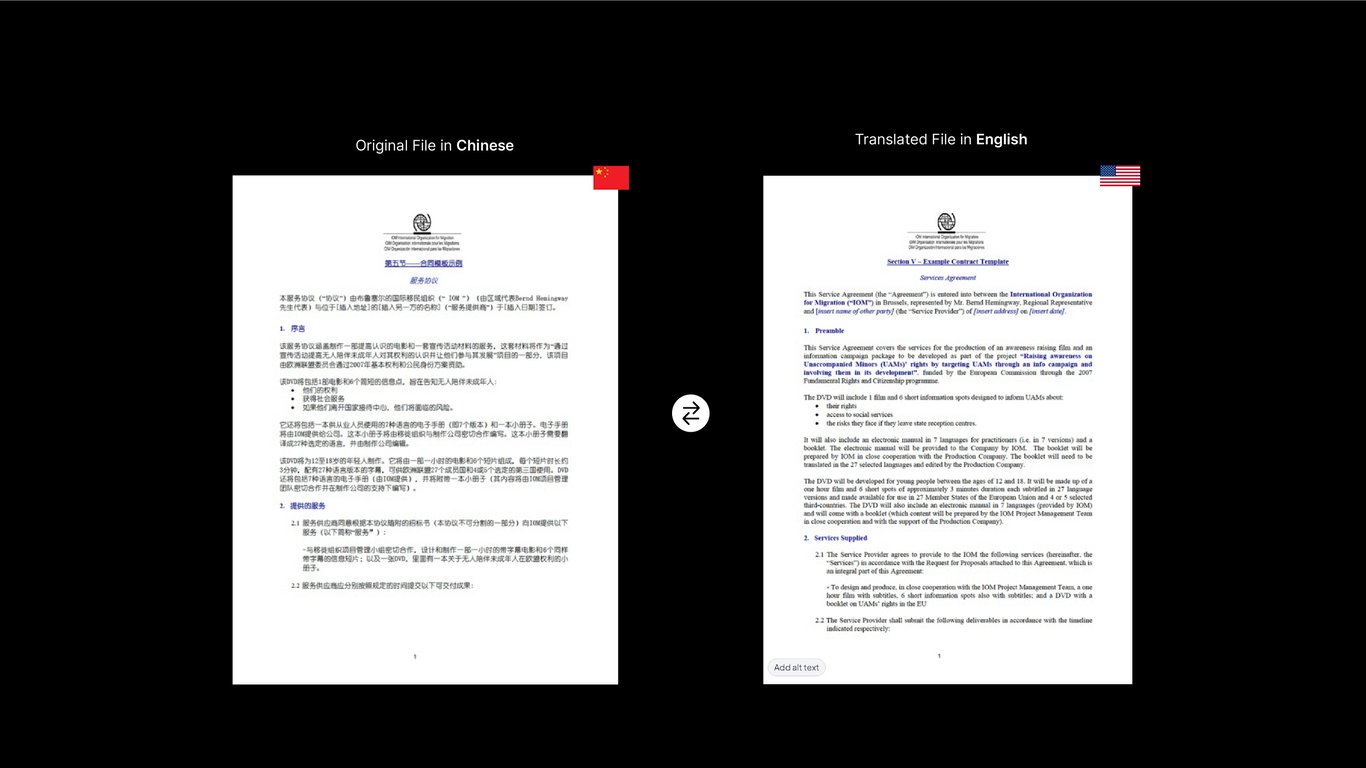 Here's a side-by-side comparison of the PDF before and after translation: