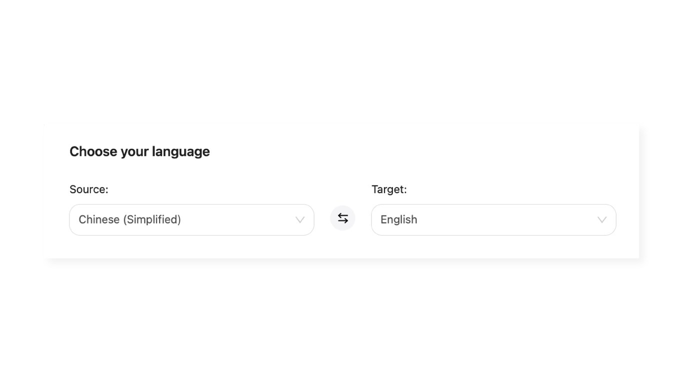 Choose the language your PDF file is in, as well as your desired output language. In this case, we want to translate our PDF from Chinese to English.