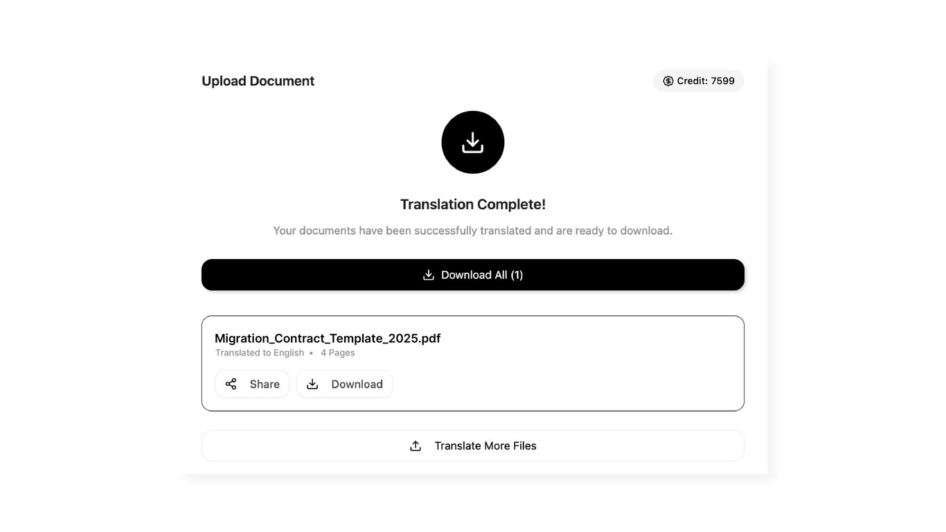 Voila! Once your translated PDF is ready, simply click to download the file.