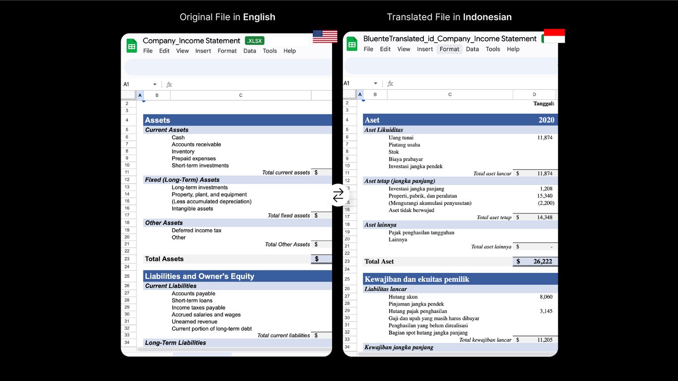 Voila! Once your document is ready, simply click to download the file.Here's a side-by-side comparison of the excel sheet before and after translation: