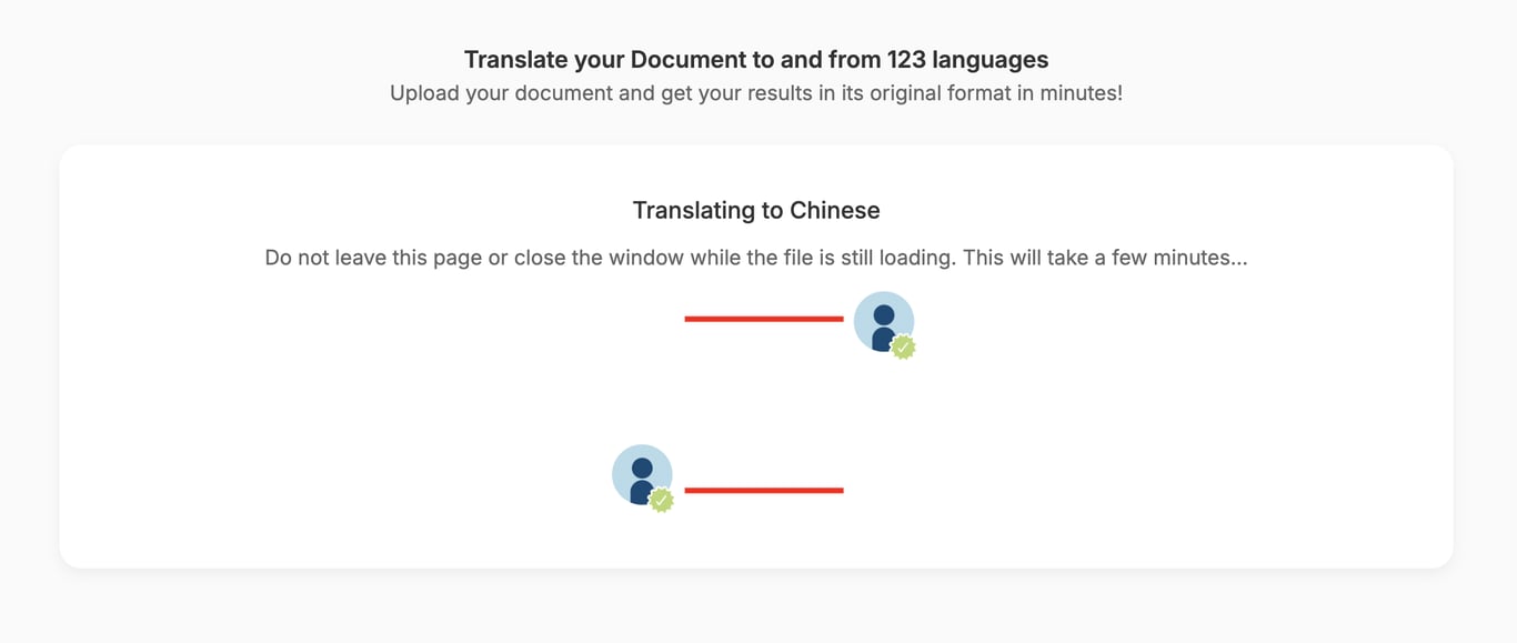 Click on the button to translate. All you have to do now is just to give our tool some time to work its magic. Your document will be ready in less than 2 minutes.
