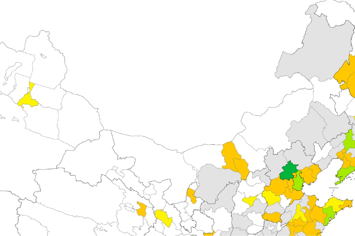 Consists of 30 cities and most are major counties or on the east coast; Xiamen, Fuzhou, Wuxi, Kunming, Harbin, Jinan, Changchun, Wenzhou, Shijiazhuang etc.