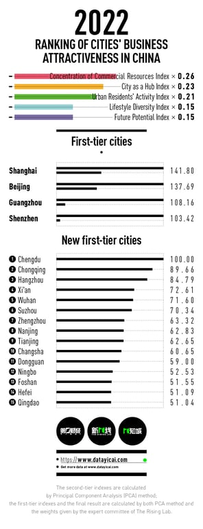 Ranking of cities' business attractiveness in China in 2022 (Source: Yicai)