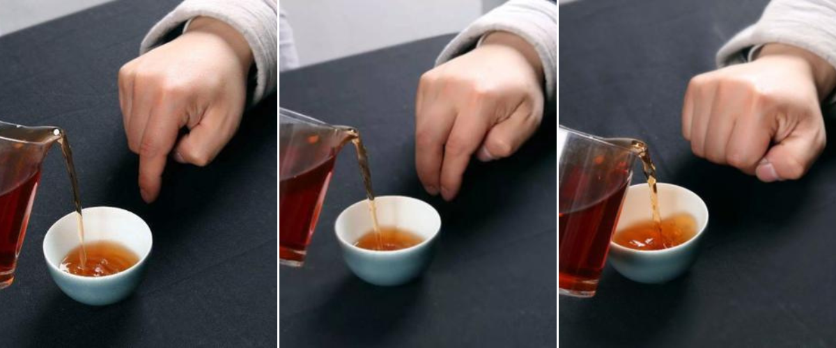In formal tea ceremonies, instead of finger kowtow, nodding the head or saying "thank you" is more appropriate.