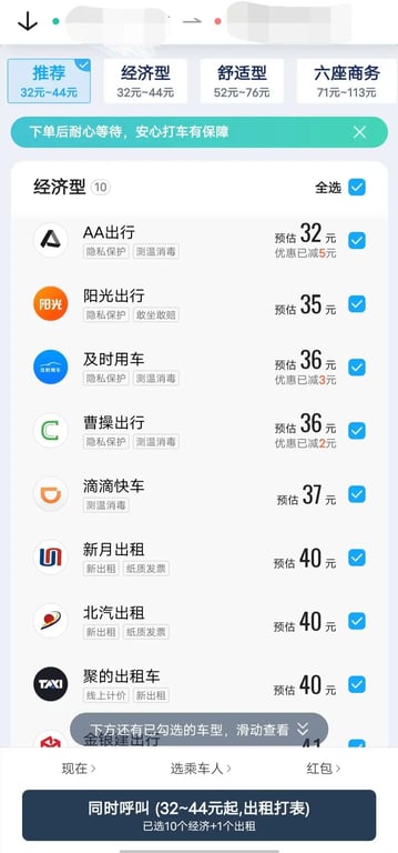 7. Ride-hailing services: You can hail rides directly from the Baidu app from a series of ride hailing platforms integrated into the app.