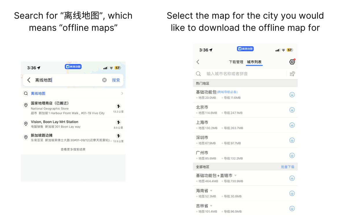 Downloading offline maps in Gaode