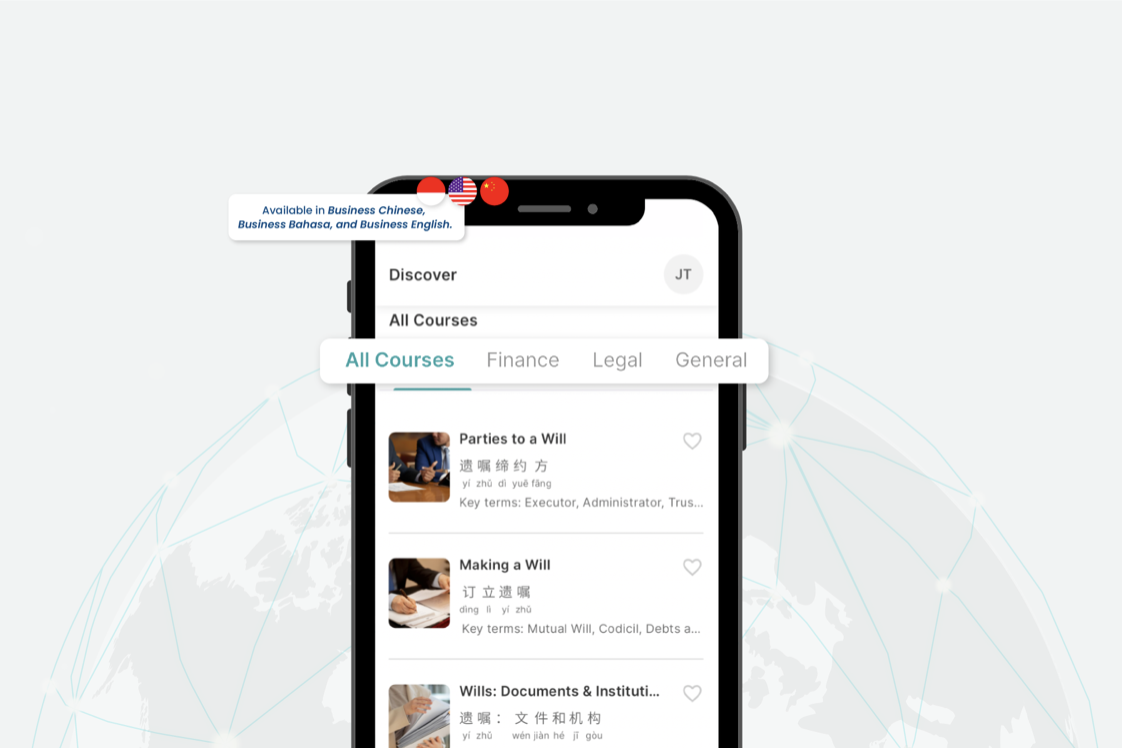 1. Glossary of industry terms: The app offers a glossary of more than 36,000 verified terms across legal, finance and general business industries in Chinese, English and Indonesian. Users can find the terms they need by searching it in their spoken language, and see the translated terms in Chinese. The glossary works just like a multilingual dictionary.