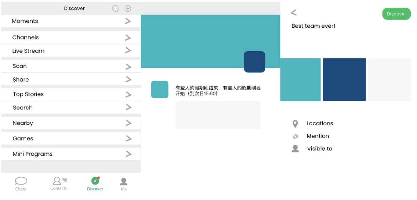 3. Social Networking: Users can post updates (also known as WeChat Moments 朋友圈), share photos and videos, like and comment on your friends' posts. WeChat also introduced a new function that allows users to share 24-hour statuses.