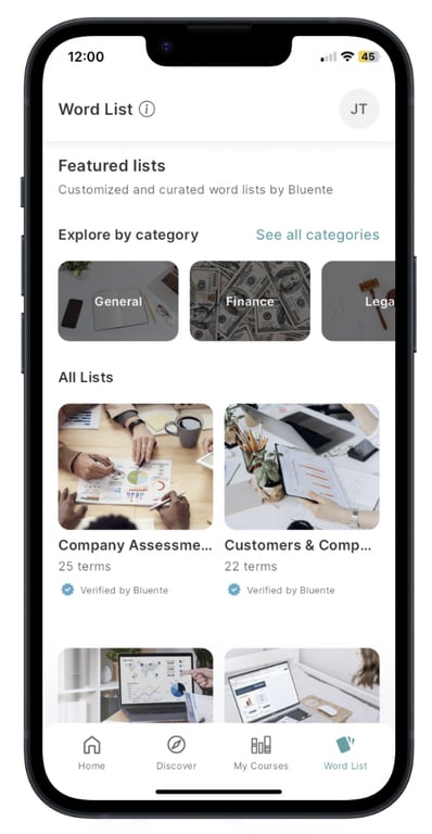 2. Word lists: The app also has word lists that curate terms according to topics in each industry. Users can also create their own word lists to organise the terms they need based on topics or use cases.