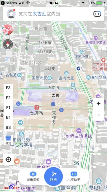 Baidu Maps is a popular mapping and navigation service in China, developed by Baidu, the country's leading search engine. Here are some features you might find useful in the app: