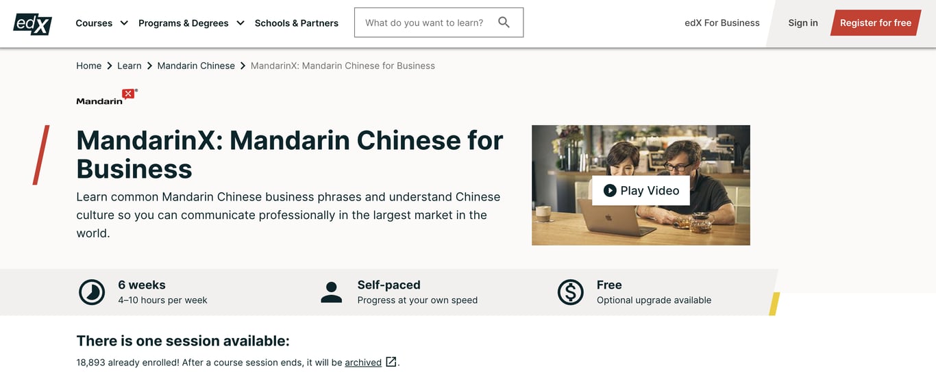 edX: This online learning platform offers a self-paced Business Chinese course called MandarinX, for learners who want to take charge of their own learning.